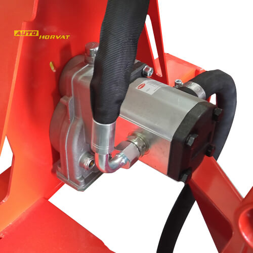 Pogon cjepača može biti na kardan ili elektromotor. Potrebna snaga traktora je vrlo mala. Radi se i sa malo obrtaja pošto pumpa ima svoj multiplikator. |