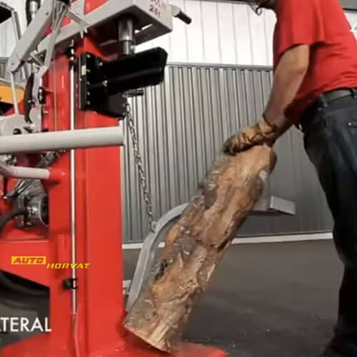 Cjepač ima podizač metrica se lijeve strane. Metricu naguramo na podizač koji nam je zatim osovi direktno na sjekiru. |