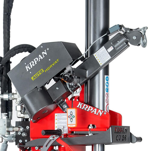 Cjepač može imati podizač panjeva koji se vrlo lako postavlja i skida. Sa lakoćom stavlja teške panjeve na stol cjepača. |