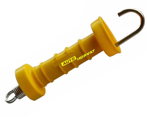 Ručke za vrata Električnog pastira koristimo kako bi mogli uću u prostor koji Električni pastir čuva bez prekida napona. Ručke možemo podijeliti na obične sa malom oprugom i na dugačke sa velikom oprugom. Ručke su napravljene od kvalitetnog materijala otpornog na napon, i dovoljno čvrstog za dugotrajan vijek trajanja.